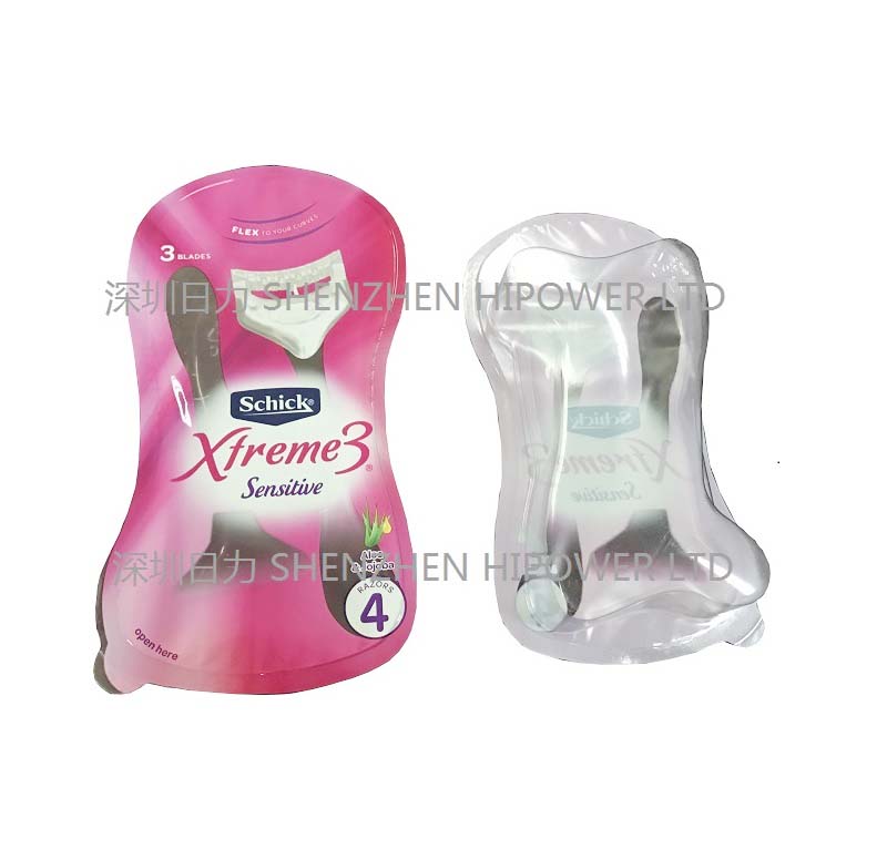 吸塑覆膜包裝用途,采用自動(dòng)拉膜切片+高頻焊接+沖飛機(jī)孔+裁切